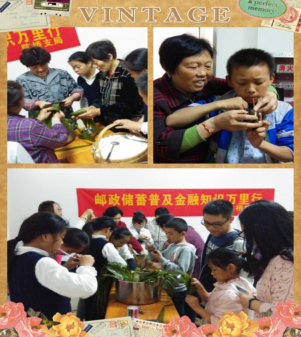为了营造浓郁的节假日氛围,让辖区内的贫困家庭、残疾人等弱势群体感受到社会关爱,6月10日晚,丽康社区联合邮政储蓄陈桥支局举办了“和谐丽康”包粽子送爱心及“和奶奶学包粽子”活动。受邀参加此次活动的有社区党员、居民代表、青少年等10多人。当糯米、粽叶、线等必备材料被整齐地摆上桌,大家便一起开始包粽子迎端午,经过2个小时的辛勤劳作,很快200多只漂亮粽子就一个个在居民们的心灵手巧中诞生了。